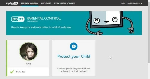 ESET Parental Control dirancang untuk melindungi anak-anak menggunakan tablet dan smartphone dengan cara yang ramah anak. Dengan aplikasi ini orang tua dapat melakukan pemantauan seperti pemblokiran aplikasi, kontrol aplikasi berbasis waktu, pencari lokasi anak, dan menunjukkan situs web yang paling banyak dikunjungi. Dengan aplikasi ini orang tua bisa memasukan usia anak, dan kategori seperti perjudian dan pornografi akan diblokir secara otomatis.