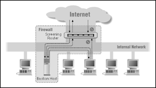 screening router dikonfigurasi sehingga hanya bastion host yang dapat melakukan
