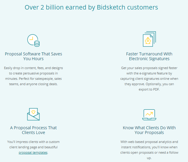 Dengan Bidsketch ini kita dapat dengan mudah membuat proposal dengan menggabungkan bagian yang digunakan sebelumnya atau dengan menggunakan contoh proposal perusahaan, dan berisi template proposal yang dirancang untuk dapat kita gunakan.