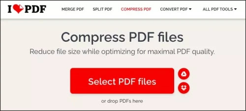Website untuk mengompres ukuran PDF yang satu ini bernama iLovePDF situs resminya www.ilovepdf.com, kita bisa akses situs resminya untuk mengkompres file PDF secara online (gratis), iLovePDF juga memiliki banyak layanan keren seperti menggabungkan beberapa PDF jadi satu, untuk mengubah JPG ke PDF, hingga memisahkan file PDF. Dengan iLovePDF ini File PDF dapat dikompres dengan level beragam sesuai kebutuhan pengguna. kita bisa memilih dari tiga opsi kompresi mulai dari Extreme sampai Low untuk mencapai ukuran file yang diinginkan. Semua opsi ini memberikan kita kualitas konten dari yang paling rendah ke tinggi dalam waktu sangat cepat. Selain file dari memori smartphone, kita juga dapat terhubung dengan Google Drive atau DropBox dan kompres file langsung dari cloud drive untuk menggunakan aplikasi kompresor PDF ini. Aplikasi ini juga bisa disetting untuk digunakan kurang lebih dalam 25 bahasa. iLovePDF juga bisa kita install di perangkat Android yang kita punya.